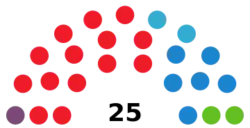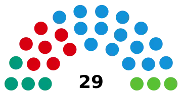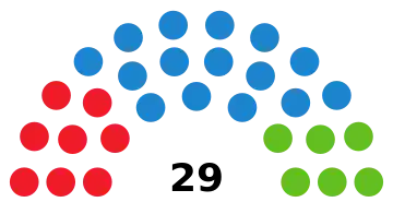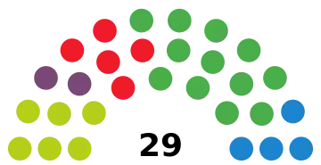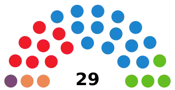 | Parti | Voix | % | +/- | Élus | +/- | |