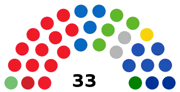 | Partis | Votes | % | +/- | S. | +/- | Coalition | ||