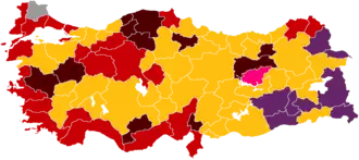 | Istanbul | Mevlüt Uysal[N 8] | AKP | Ekrem İmamoğlu[N 9] | CHP |