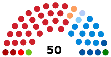 | 50 sièges du conseil régional (Majorité absolue : 26 sièges) | ||||||||||||||