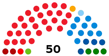| 50 sièges du conseil régional (Majorité absolue : 26 sièges) | ||||||||||||||