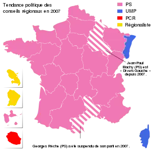 Le PS a reconduit tous ses présidents et ses deux présidentes sortantes, sauf Georges Frêche (cf cas particulier du Languedoc-Roussillon). Ni Ségolène Royal ni Georges Frêche[36] n'ont participé à la convention de ratification des listes le 12 décembre à Tours[33]. L'objectif affiché par Martine Aubry est de gagner toutes les régions.