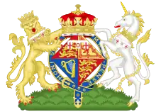 Malgré la mort de la reine Mary le , les préparatifs du couronnement se poursuivent et il a lieu comme prévu le [117]. À l'exception de l'eucharistie et de l'onction, l'ensemble de la cérémonie à l'abbaye de Westminster est retransmis à la télévision pour la première fois de l'histoire[118],[alpha 5]. La robe de couronnement est dessinée par Norman Hartnell (en), elle est brodée avec les emblèmes floraux des pays du Commonwealth[125],[126] : la rose Tudor anglaise, le chardon écossais, le poireau gallois, le trèfle irlandais, la feuille d'érable canadienne, le mimosa doré australien, la fougère argentée néo-zélandaise, la protée royale sud-africaine, la fleur de lotus pour l'Inde et Ceylan et le blé, le coton et le jute pakistanais[127].