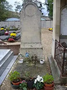 Elle meurt à Paris à son domicile de la rue Saint-Lazare le et est enterrée au cimetière paroissial de Louveciennes[45]. Sur la pierre tombale, privée de sa grille d'entourage, se dresse la stèle de marbre blanc portant l'épitaphe « Ici, enfin, je repose… », ornée d'un médaillon représentant une palette sur un socle et surmontée d'une croix[46]. Sa tombe a été transférée en 1880 au cimetière des Arches de Louveciennes, lorsque l'ancien cimetière a été désaffecté.