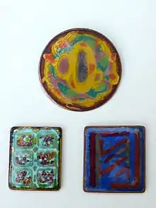 Cette technique dérive de l’utilisation des émaux sur métaux précieux dans l’art de la bijouterie.