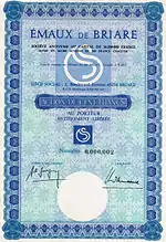 La manufacture de Briare a été cotée à la bourse de Paris dès l'origine en 1838. Elle a été retirée de la cote quelques années après.