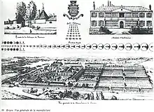 En 1876, des cités ouvrières avec jardins sont construites sur le domaine[52] pour y loger 186 familles ouvrières - représentant environ 800 personnes - dotées d'un grand confort pour l'époque (bien aérées, eau, gaz) et relativement spacieuses puisque comprenant trois pièces, une pour les parents, une pour les garçons et une pour les filles[53]. Elles ne sont détruites que cent ans plus tard[H 2]. Des écoles sont bâties au sein même de l'usine[34], pour lesquelles F. Bapterosses développe même un système breveté de pupitre ajustable[54].