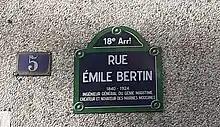 - à Paris, la rue Émile-Bertin, dans le 18e arrondissement, une rue nouvellement créée sur l'ancienne enceinte de Thiers en 1934