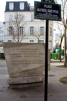 Monument rendant hommage à l'engagement de Zola, sur la place Alfred-Dreyfus à Paris