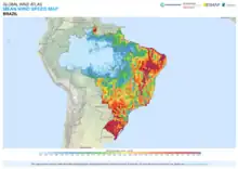 Le potentiel éolien du Brésil était évalué à 350 GW en 2013 ; il est surtout localisé dans le nord-est et le sud[2]. En 2022, l'agence brésilienne de planification énergétique EPE l'estime à plus de 700 GW[3]. Une étude de la Banque Mondiale estime même le potentiel éolien en mer à 1 200 GW, alors qu'ABEEólica estime le potentiel à terre à 500 GW[4].