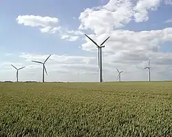 - (en)First giant turbines installed at wind farm, The Argus, 11 mars 2017.