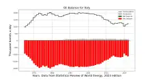 | Pétrole brut | Importation nette[1] | 9e | 2021 | 2,44 | EJ | 2,6 % | 1er : Chine (21,37 PJ) ; 6e : Allemagne (3,45 PJ) ; 7e : Espagne (2,45 PJ) |