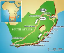 L'Afrique du Sud organise tous les deux ans le South African Solar Challenge, rebaptisé Sasol Solar Challenge du nom de son sponsor principal Sasol[36], une course internationale de véhicules alternatifs : véhicule électrique, véhicule hybride, véhicule solaire, véhicule à biocarburant ; l'objectif principal est de promouvoir la voiture solaire. Depuis sa création en 2008, des véhicules expérimentaux parcourent un circuit variant de 4 100 km à travers l'Afrique du Sud, entre les villes de Johannesburg, Le Cap, Durban et Pretoria pour l'édition de 2010, et même 5 400 km en 2012, à 2 000 km entre Le Cap et Pretoria pour l'édition 2014. Les équipes participant à la course sont en général formées par des universités ou des entreprises de divers pays.