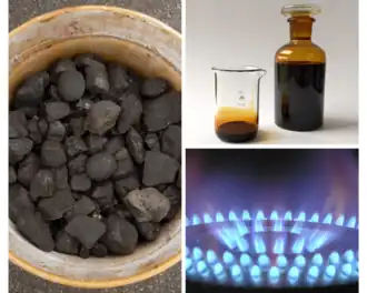Un combustible fossile est un combustible riche en carbone, par exemple un hydrocarbure, issu de la transformation lente de matière organique enfouie dans le sol depuis plusieurs millions d'années, jusqu'à parfois 650 millions d'années[1]. Il s'agit du pétrole, du charbon, du lignite et du gaz naturel. Parmi ces derniers, le méthane (CH4) présente le rapport H/C le plus élevé, alors que l'anthracite et certaines houilles sont composés de carbone presque pur.