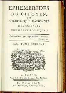 - Éphémérides du citoyen ou Bibliothèque raisonnée des sciences morales et politiques : 1767-1772