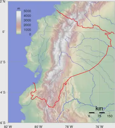 Les conflits frontaliers avec le Pérou voisin ont donné lieu à quatre guerres. La guerre de 1858-1860 se conclut par la signature du traité de Mapasingue, favorable au Pérou, traité dénoncé par la suite par le gouvernement du président García Moreno. La guerre de 1941 se conclut également par une défaite de l'Équateur et débouche sur la signature du protocole de Rio en 1942, qui entérine la perte pour l'Équateur de la majeure partie de ses possessions en Amazonie (soit 200 000 km2) et de l'accès au Marañon, et trace une nouvelle frontière qui se veut définitive. Toutefois, de nouvelles explorations de la zone frontalière dès 1947 aboutissent à des interprétations divergentes entre le Pérou et l'Équateur sur le tracé de la frontière, désaccords qui débouchent sur deux nouvelles guerres, la guerre du Paquisha en 1981 et la guerre du Cenepa en 1995, sans modifications territoriales importantes. Le conflit est finalement résolu par l'accord de Brasilia du 26 octobre 1998, qui fixe définitivement la frontière entre les deux pays.