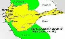 Sur le plan politique, Quito contribue à la défaite de Gonzalo Pizarro contre Charles Quint, Sebastián de Belalcázar choisissant le camp de ce dernier. En 1545, le pape Paul III donne qualité d'évêché à Quito, et en 1563, Philippe II fait de Quito le siège de l'audience royale de Quito, avec pouvoir sur un vaste territoire s'étendant de Jaén et Guayaquil au sud, jusqu'à Cali et Buenaventura au nord et comprenant également une large part du bassin amazonien. Bien que théoriquement soumise à l'autorité du Vice-Roi du Pérou, l'Audience de Quito, gouvernée par un président nommé par le roi, jouit d'une large autonomie due à la grande distance entre Quito et Lima. Une rébellion éclate en 1592, appelée « Révolution des alcabalas », en opposition à l'impôt du même nom décrété par la couronne d'Espagne. Cette révolution, qui se résout après une médiation des jésuites, est parfois vue comme le premier témoignage de l'émergence des Espagnols nés dans la colonie (les Créoles) qui entrevoient déjà la possibilité de l'indépendance, qui ne se concrétisera que plus de deux siècles plus tard. Malgré cette rébellion, la deuxième moitié du XVIe siècle marque la consolidation de la domination des Espagnols nés en métropole, aussi bien sur le plan culturel que religieux ou administratif[L 6].