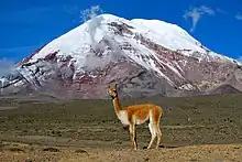 - Chimborazo (6 310 m), l'un des plus hauts volcans de l'hémisphère sud (le Nevado Ojos del Salado est le plus haut volcan, à 6 891 m), et également le point de la surface terrestre le plus éloigné du centre de la terre (à cause de l'aplatissement de la terre aux pôles).