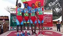 Un coureur érythréen participe à la course en ligne masculine depuis 2012.