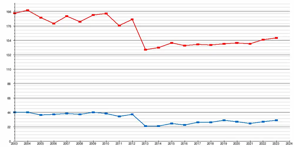 | Année | 2010 | 2011 | 2012 | 2013 | 2014 | 2015 | 2016 | 2017 | 2018 | 2019 | 2020 | 2021 | 2022 | 2023 |