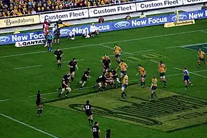 Cependant, la demi-finale contre la France voit les Bleus éliminer les Wallabies[30]. Les Français sont menés (6-9) à la mi-temps et pendant une bonne partie du match, mais réussissent à gagner par 30-24 en marquant au total quatre essais[31]. Les Bleus ne renouvellent pas cet exploit en finale et sont battus par les All Blacks sur le score de 29-9[32].