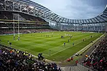 Le XV d'Irlande dispute son premier match à l'Aviva Stadium, son nouveau stade, le 6 novembre 2010 face à l'Afrique du Sud, rencontre remportée par les springboks sur le score de 23 à 21 [58].