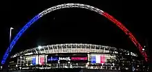 Quatre jours plus tard, les Bleus se déplacent à Wembley pour un match à l'intérêt sportif limité, du fait de l'émotion patente[17]. Une cérémonie protocolaire en hommage aux victimes est tenue avant le match tandis que La Marseillaise est chantée par tout le stade anglais[18]. L'enjeu sportif semble anecdotique : l'Angleterre s'impose sans forcer 2-0[19].
