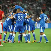 Cependant la Grèce effectuera des éliminatoires pour la Coupe du Monde 2018 de bien meilleure qualité que ceux de l'Euro 2016, où elle se retrouve dans un groupe H composé de la Belgique, de la Bosnie, de Chypre, de l'Estonie et de Gibraltar. Contrairement aux éliminatoires de l'Euro 2016, elle ne se laisse plus surprendre par des adversaires modestes, à l'exception d'un match nul et vierge concédé face à l'Estonie à domicile (0-0) et elle réussit même à neutraliser la Bosnie, son principal rival pour la 2e place du groupe, à deux reprises (1-1 à domicile, 0-0 à l'extérieur) ainsi que la Belgique, grand favori du groupe, lors du match aller à l'extérieur où les Grecs étaient passés tout près de la victoire, concédant l'égalisation en toute fin de match et en infériorité numérique (1-1)[14]. Les Grecs terminent finalement 2e de leur groupe, avec un bilan de 5 victoires, 4 matchs nuls et une seule défaite (face aux Diables Rouges à domicile 1-2), derrière la Belgique mais devant la Bosnie et font partie des huit meilleurs 2e qualifiés pour les barrages. Les Hellènes ne sont cependant pas tête de série et héritent d'un tirage au sort compliqué puisqu'ils doivent affronter la Croatie. Malheureusement, la Grèce est lourdement battue à l'aller en Croatie (1-4) et doit l'emporter sur le score de 3-0 lors du match retour pour valider son billet pour la Coupe du Monde 2018, ce qui constituerait sa 3e participation consécutive à une phase finale d'un Mondial, après les éditions 2010 et 2014. Le , la Grèce n'encaisse pas de buts mais ne réussit à en marquer aucun, laissant les coéquipiers de Luka Modric se qualifier pour le Mondial russe et poursuivre leur route jusqu'en finale de la compétition[15]. En dépit de cette non-qualification, la sélection hellène a montré quelques performances prometteuses, notamment face aux Belges contre qui ils ont donné du fil à retordre et frôlé l'exploit.