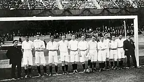 Ce dernier match n'est pas sans effet, il pousse la fédération à privilégier davantage la formation des joueurs. Le système de formation anglais sert de modèle et Edgar Chadwick, joueur professionnel et international anglais à la fin du XIXe siècle, est engagé en 1908 comme entraîneur de l'équipe nationale. Chadwick mène l'équipe à la médaille de bronze aux Jeux olympiques de Londres[8] et l'établit comme l'une des meilleures équipes du continent. En 1908 se tient en effet pour la première fois le tournoi de football officiel aux Jeux olympiques. Dans cette édition, les Pays-Bas profitent du forfait des Hongrois pour raisons économiques et entrent directement en demi-finale. Opposés à la Grande-Bretagne, ils sont défaits (0-4), mais remportent le match pour la troisième place aux dépens de la Suède (2-0)[9]. Les deux premiers buteurs Oranjes de l'histoire olympique sont Jops Reeman et Edu Snethlage[8]. Le 10 avril 1910, les hommes de Chadwick écrasent les Belges (7-0) grâce à un triplé de Mannes Francken[10].