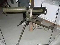 - Browning M2HB (Mg 64) : mitrailleuse lourde américaine de 1921, en cal. 12,7 mm, utilisée sur trépied, sur les véhicules blindés et les bateaux. La version utilisée sur les bateaux a été modernisée, notamment avec un canon qui se verrouille/déverrouille avec une rotation d'un quart de tour seulement au lieu de devoir être complètement vissé / dévissé.