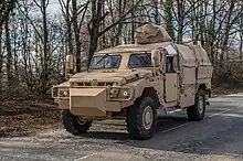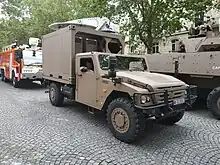 Camion lourd porteur 6X6 non protégé porte shelter équipé d'un système qui permet, en liaison avec l'armée de l'Air et de l'Espace, de commander la composante sol-air mais également de coordonner l'utilisation de la troisième dimension par les autres intervenants de l'armée de Terre (artillerie, sol-sol, hélicoptères, drones) | ?