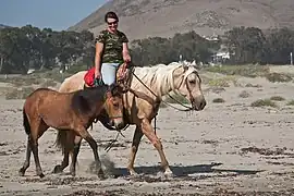 En Amérique, les premiers colons espagnols réintroduisent le cheval Barbe et andalou dans les deux continents américains. L'espèce y a disparu depuis plus de huit millénaires. En 1519, Les conquistadores de Hernán Cortés amènent avec eux onze chevaux et six juments[75]. Le fait que les Amérindiens n'aient jamais vu ces bêtes les aide à remporter de nombreuses batailles.