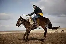 Cavaliers kazakhs faisant usage de leurs mains et de leurs jambes.