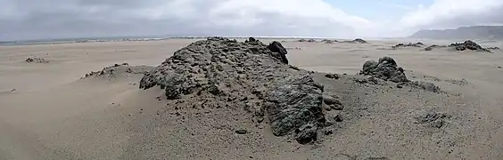 L'érosion éolienne attaque les roches en enlevant des particules, abrasion ou en polissant la surface. Elle est d'autant plus efficace que les obstacles sont inexistants et que le vent est puissant, régulier et chargé de poussières
