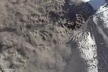 Vue du panache volcanique s'élevant au-dessus du volcan le 17 avril 2010 au cours de la seconde phase éruptive. | |