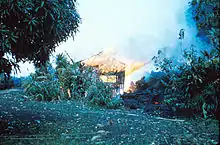 Fontaines de lave au-dessus de papayers au début de l'éruption. | |