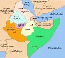 L'Érythrée est située dans l'est africain et au nord de la Corne de l'Afrique, sa délimitation depuis son indépendance est disputée depuis 1998 avec l'Éthiopie sur des bouts de territoires désertiques autour de Badmé[21] et du désert Danakil[22], notamment ; la Cour internationale de justice de La Haye émet un accord en 2003 mais celui-ci est rejeté par l'Éthiopie, laissant un désaccord territorial sur cette partie de la corne africaine[23],[22]. Ce conflit repose principalement sur les différentes ethnies présentes sur ces territoires : les kunamas, les tigrinas, les sahos et les afars[24].