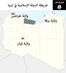 À partir de cette date, il revendique trois provinces couvrant l'ensemble du pays : la province de Cyrénaïque (Wilayat Barca), la province du Fezzan (Wilayat Fezzan) et la province de Tripolitaine (Wilayat Tarabulus). Dans les faits, le groupe est essentiellement présent dans la ville de Syrte où il ne contrôle plus que quelques quartiers en bord de mer[6]. Il a été chassé en de Derna où il avait tenté de s'implanter[1].