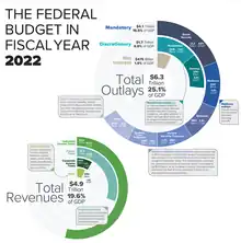 Le budget fédéral des États-Unis est déficitaire. La dette des administrations publiques du pays s'élève à 161 % du PIB en 2020[42].