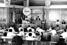 En 1975, le Congrès de Micronésie promulgue un statut appelant à une convention constitutionnelle[Bu 3]. Entre juillet et novembre 1975 se tient à Saipan une convention constitutionnelle[Bu 4]. Au moment de l'ouverture de la convention, les électeurs mariannais ont déjà approuvé par référendum, le 17 juin 1975, le commonwealth signé avec les États-Unis[Bu 5]. Les résultats du référendum du 12 juillet 1978 sanctionnent les divergences constatées tout au long des négociations. Les Palaos et les îles Marshall rejettent la constitution, mais Chuuk, Pohnpei, Kosrae et Yap l'acceptent[30]. En attendant le plein et entier fonctionnement des futures institutions des pays micronésiens, l'administration américaine continue à exercer certains pouvoirs liés à leurs obligations[Bu 6],[31],[Mi 1]. En 1980, après plus d'une décennie d'intenses négociations, de concert avec les Îles Marshall, les États fédérés de Micronésie paraphent avec les États-Unis un projet de Traité de libre-association. Il est accompagné d'accords bilatéraux subsidiaires adaptés à chacun des deux pays de la région de Micronésie[Mi 2]. Le Congrès des États-Unis, le Congrès des États fédérés de Micronésie et les quatre législatures de Yap, Chuuk, Pohnpei et Kosrae les adoptent en 1982, le Parlement marshallais l'année suivante. Les électeurs des deux pays insulaires les approuvent par plébiscite en 1983[32],[Mi 2].