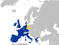 Ce sont l'Allemagne, l'Autriche, la Belgique, la Bulgarie, Chypre, la Croatie, le Danemark, l'Espagne, l'Estonie, la Finlande, la France, la Grèce, la Hongrie, l'Irlande, l'Italie, la Lettonie, la Lituanie, le Luxembourg, Malte, les Pays-Bas, la Pologne, le Portugal, la Roumanie, la Slovaquie, la Slovénie, la Suède et la Tchéquie.