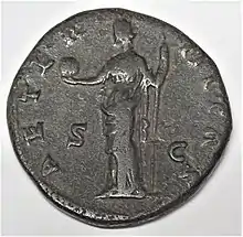 Faustine l'Ancienne représentant Éternité sur un as (monnaie romaine).