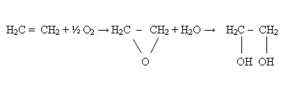 L'oxyde d'éthylène ((CH2)2O) donne de l'éthylène glycol, qui lui-même, combiné à l'acide téréphtalique, fournit des fibres polyesters. L'oxyde d'éthylène est un produit très instable à cause de l'« insaturation » de sa structure chimique. Il explose immédiatement en présence d'oxygène, c’est-à-dire qu'il cherche à combler le vide atomique de sa structure en captant les atomes d'oxygène de l'air. En 1957, un réacteur pilote d'oxyde d'éthylène a explosé à Anvers (Belgique), faisant plusieurs morts. Le souffle de l'explosion a déplacé un spectromètre de masse (de plus de cent tonnes) de plusieurs dizaines de mètres. L'éthylène glycol sert également dans la fabrication des antigels.