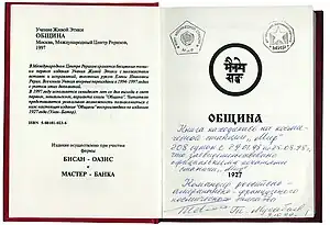 - Un des livres de l’Éthique Vivante, La Communauté s’était trouvé au bord de la station orbitale " Paix " dans la période du à . Ce fait est attesté par les sceaux officielles de la station " Paix " et par la signature du commandant de l’équipage cosmique russe-américain-français, le pilote cosmonaute — Talgat Moussabaev.