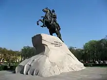 - place du Sénat : Monument à Pierre le Grand, dit Le Cavalier de bronze, 1782. Cette statue équestre est une commande de Catherine II de Russie à laquelle Falconet travailla durant douze ans, en collaboration avec sa future bru Marie-Anne Collot. Elle est érigée sur un monolithe de granit.