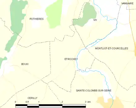 La partie est d'Étrochey est traversée par le cours de la Seine.