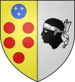 Écartelé : 1) palé d'argent et d'azur de six pièces, 2) de gueules à la fasce d'hermines; 3) de gueules à sept macles d'argent ; 4) d'azur au lion morné d'argent ; sur le tout d'azur au château d'or. |