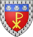 De gueules au monogramme du Christ d'or, au chef cousu d'azur chargé de trois coquilles d'argent, bordé d'hermines. |