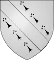 D'argent à la fasce de gueules chargée de trois besants d'or et accompagnée de six mouchetures d'hermines de sable. |