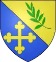 Tranché d'or au rameau d'olivier de sinople, et d'azur à la croix tréflée d'or. |